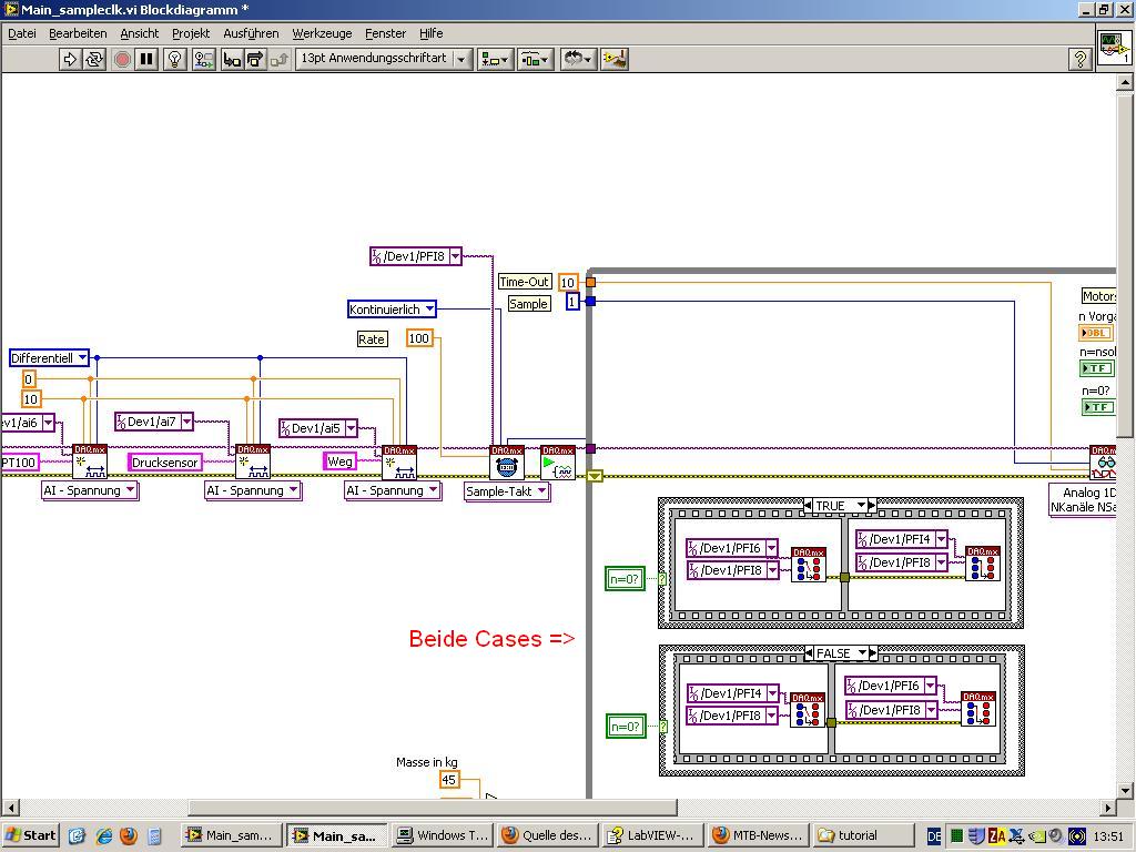 Da das VI auch laufen soll, wenn sich der angeschlossene Motor noch nicht dreht, wollte ich die externe Quelle des Sample-Taktes abhängig vom Status des Motors in einem Case (n=0?) auswählen lassen.