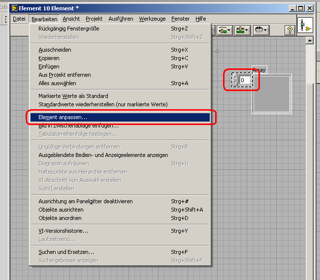 Das ist nämlich das Problem. Ich kann nicht im Anpassungsmodus die Pfeiltasten von Array bearbeiten. Liegt es vielleicht an der LabVIEW Version? Ich habe die Full Version.