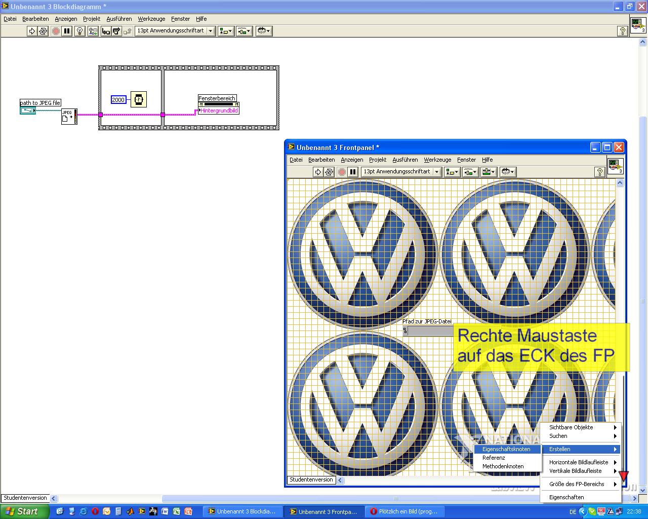 Übrigens: Wenn ein Bild als Hintergrund verwendet wird und Controls darüber liegen muss bei jeder Wertänderung das Bild neu geladen werden. Es könnte sich daher in Fällen von vielen Ein- und Ausgabeelementen lohnen, das Bild in mehrere kleine Bilder zu splitten. So jedenfalls die Aussage von Seiten NI.