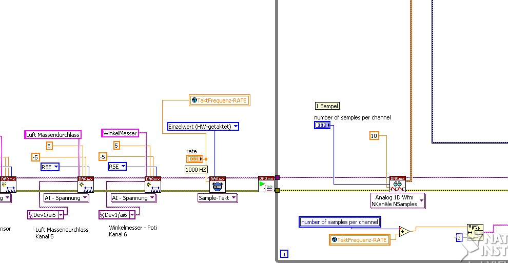 ' schrieb:Wie im screenshot lese ich im ersten schritt 6 Analog kanäle mit DAQ. in einer loop. mit 1000 hz rate und 1 sampel per kanal (screenshot 1). ( Hab hier kein Time/Verzörungsfunktion für Schleife gebaut!! oder soll ich ?)