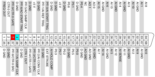 i hab die leitungen einmal an DGND und einmal an DIO von der karte. sollte so funktioninen? ich finde bei der karte kein Counter Eingang irgendwie CountOut gibts. und jede menge PFI anschlüsse..