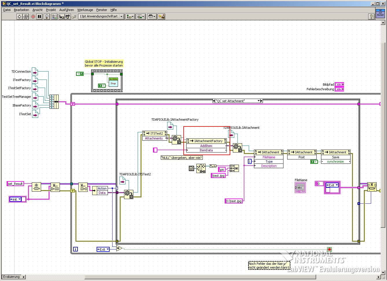 Ich gehe davon aus, die Methode AddItem will einen Objektzeiger (ItemData) haben. Oder eben NULL. So wie es aussieht generiert der LV-Knoten aber einen Pointer auf einen Variant, der per se immer einen Inhalt hat. Dieser Variant ist eben der Eingang in den Knoten. Der Knoten müsste jetzt aber einen NULL-Pointer generieren, was aber nicht geht, da grundsätzlich ein Eingang vorhanden ist. Dumm gelaufen. Hier müsste es also einen Sonderfall in LV geben. So sehe ich das jetzt.