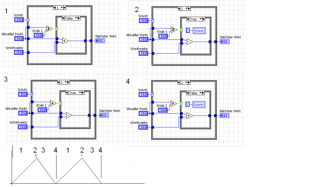 Falls ja, wird die Addition zu einer Subtraktion in der Case-Structur umgewandelt und es beginnt die fallende Flanke.