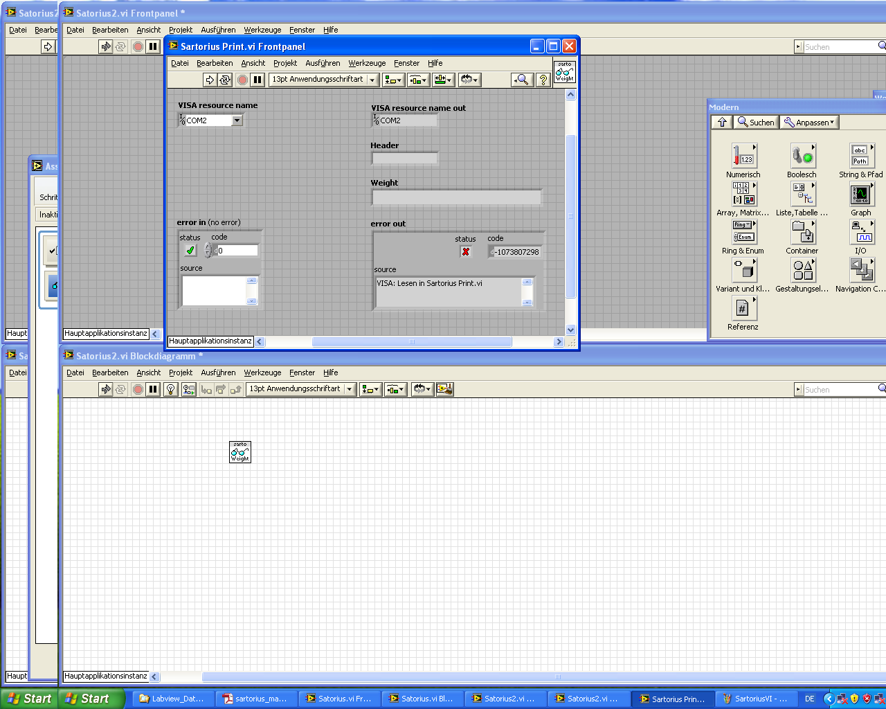 Waage Sartorius mit LabVIEW-2010 lesen und analysieren