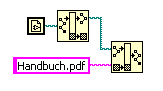 Ich versuche seit einiger Zeit aus meiner Anwendung heraus PDF Dateien zu öffnen. Die Idee ist es die vorhandenen Handbücher durch einen Tastendruck aufzurufen. Die Einbindung hat funktioniert. Ich habe in meinem Projektordner einen Unterordner angelegt, in dem ich die Handbücher (zum Testen erstamal nur eines) abgelegt habe. Im Build werden die Dateien dann in einem Unterordner "data" (=> Das wurde automatisch so gemacht und stört mich nicht weiter) abgelegt. Ich habe verschiedene Möglichkeiten durchprobiert. Mein letzter Versuch war das Werkzeug "Pfad erstellen" zu benutzen. Als ersten Teil habe ich das "Default Data Dir.vi" an den Eingang gelegt, und der zweite Teil besteht aus "009001.pdf" für die aufzurufende Datei. Den Ausgang von "Pfad erstellen" leite ich an den Eingang von "Open Acrobat Document.vi" weiter. Ich bekomme aber die Meldung von Acrobat: "There was an error opening this document. This file cannot be found."