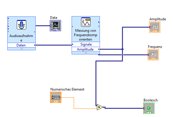 Habs nun geschafft mit Hilfe einer Beispieldatei von LV, über Mikro aufzunehmenAnsage und die Amplitude in einem Grafen darzustellen. Hatte da schon so meine Probleme mit der Konfiguration. Glaub die Device ID war falsch, da ich zuerst gar kein Signal angezeigt bekam.