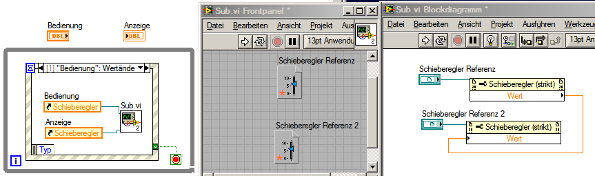 2 Erzeugen der Referenzanschlüsse auf dem FP das SubVI (Bild Mitte)