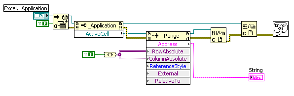 In LabVIEW finde ich den Eigenschaftsknoten "ActiveCell" jedoch nirgends. Es müsste sich doch um eine Eigenschaft von "Excel._Worksheet" handeln ?!?