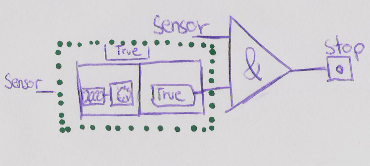 Ich habe einen Sensor der bei einem bestimmten Ereignis den Wert TRUE ausgibt. Bei diesem Ereignis möchte ich, dass eine While-Schleife beendet wird. Bis hierhin ist eigentlich alles klar. Jedoch möchte ich, dass die Schleife erst beendet wird, wenn der Sensor den TRUE-Wert für einige Zeit (beispielsweise 2 sec) ausgibt. Ich möchte somit verhindern, dass die Schleife fälschlicherweise durch einen kurzen Impuls oder "Rauschen" verfrüht beendet wird.