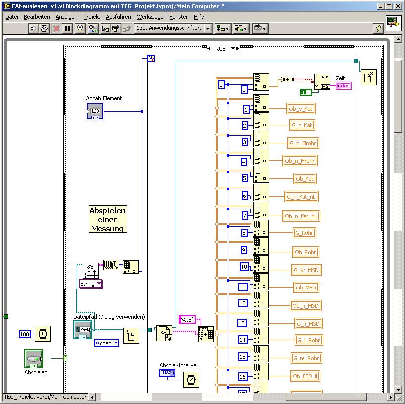 Sprich die Messwerte werde im sekundentakt oder auch zehntelsekundentakt Zeilenweise aus der Datei ausgelesen.