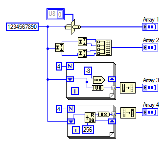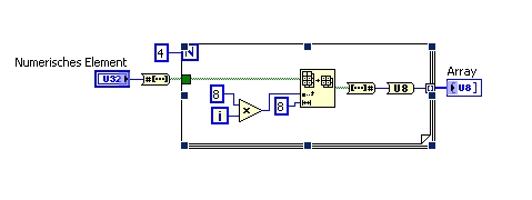 ' schrieb:Ich habe ein 4Byte Datenstrang (U32), diesen Datenstrang möchte ich nun "zerhacken" und zwar in je 4x 1Byte- Stränge.