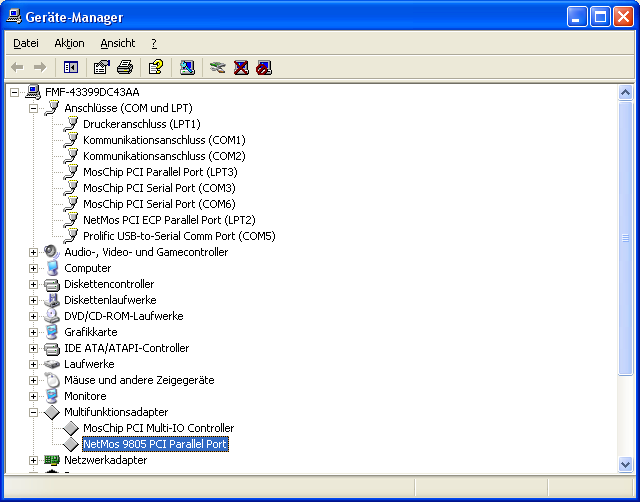 habs gestern auch noch mal vergeblich mit ner zweiten PCI-Parallel-Karte versucht. Die taucht im Gerätemanager weiter unten NOCHMAL auf (s. Anhang). Nun ja, mit Port378 funzt die Parallelkarte, nur habe ich es inzwischen geschafft, dass die Anwendung, welche auf die Karte zugreift nicht mehr funzt Lol