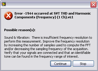 Ich habe einen Player geschrieben, der per PCI-6713 Karte von NI meine Daten aus dem Computer zum weiteren Messaufbau gibt. Im Endeffekt nehme ich über diesen Player über den Line-In Anschluss auch wieder ein Audiosignal auf. Von diesem Signal möchte ich eine THD-Analyse machen. Diese Analyse geschieht in einem Sub-Vi, welches mir zur Zeit noch Probleme bereitet.