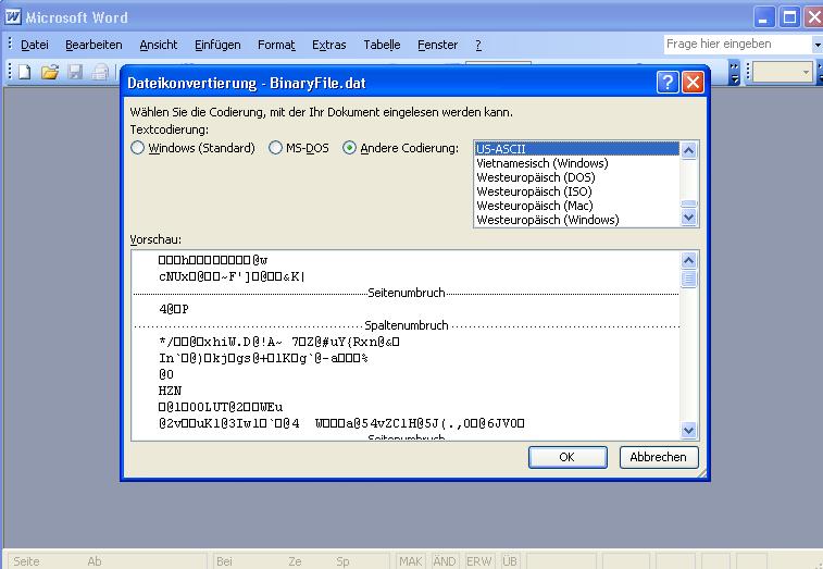 noch eine Frage,funktioniert das Schreiben und Lesen bei dir mit Ms Word Datei?Habe unter VI Find Examples die Beispiele read binary file.vi und write binary file.vi laufen gelassen,selber Problem,Das Format der Daten ist nicht erkennbar.