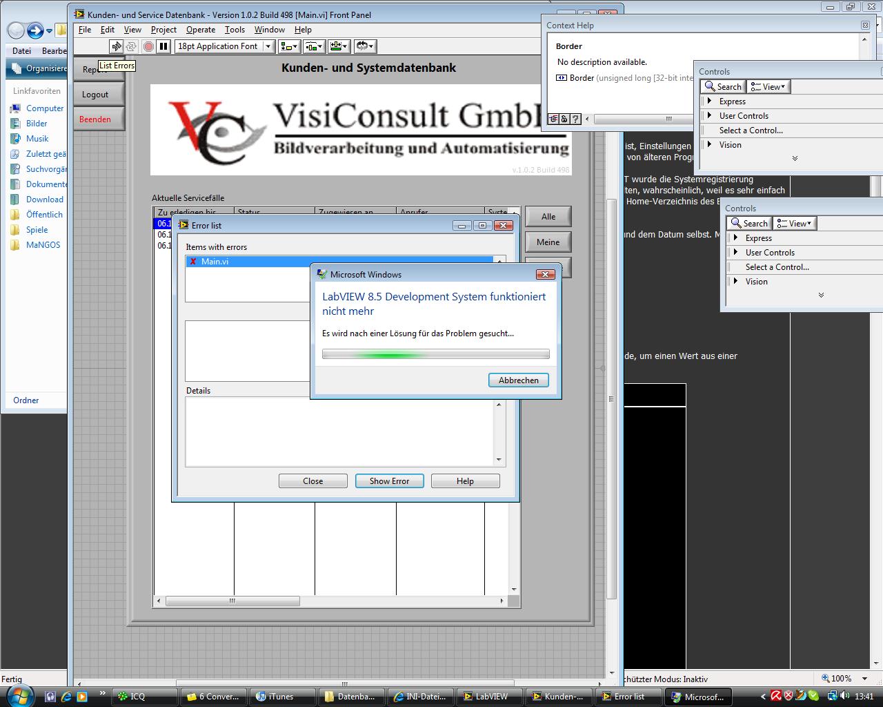 Zitat:Also Fakt ist, dass die LabVIEW Fehleranzeige durch irgendetwas in meinem vi abstürzt.