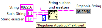 Ok, danke, hat funktioniert mit Teilstring + dann wieder zusammensetzen mit eingefügten Doppelpunkten. Wollte es auch am Anfang so machen, dachte aber, es gibt vielleicht eine "elegante" Lösung, die mit weniger VIs auskommtSmile