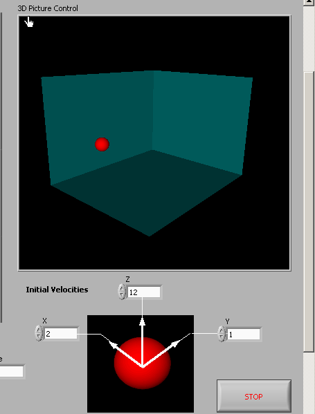 Aber ich meine LabVIEW ist nicht in der Lage mit seinen 3D-Animationen einen Raum mit einem Ball darzustellen und die Position des Balls dann wirklich auch zu verändern. Es ist vielleicht möglich mehrere Bilder zuerst von verschiedenen Positionen des Balls aufzunehmen und diese Bilder dann in Abhängigkeit der wirklichen Position einzublenden.