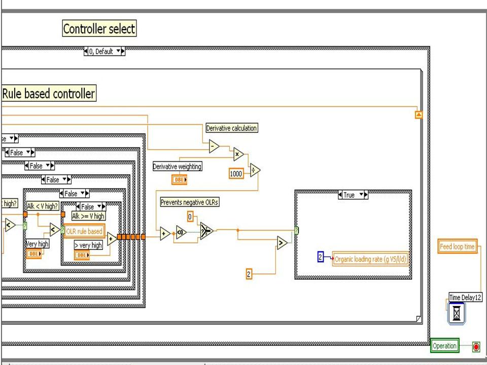 hab' ne Frage (wahrscheinlich stehh' ich nur gerade auf dem Schlauch). Aber ich weiss absolut nicht weiter. Hab unten Bild aus meinem Blockdiagramm eingefuegt. Ich betreibe eine Anlage, in der der Zulauf geregelt wird. Momentan wird er allerdings nur bedingt geregelt. Habe ein Bild in den Anhang gepackt, das die momentane Situation darstellt. Die "organic loading rate" in der case-structure soll mit dem momentanen Wert verglichen werden. Wenn sie ueber einen festen Wert ansteigt, soll der festgesetzte Wert als Maximum fuer die "organic loading rate" angenommen werden. Wie kann ich die Konstante fuer die "organic loading rate" in die case-structure implementieren?