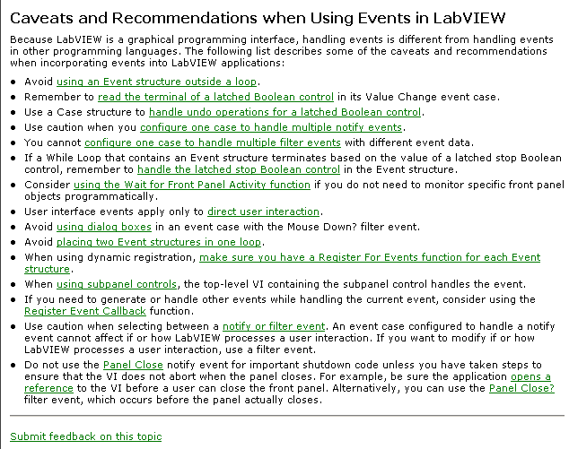 Lies dir mal die Hilfe zur Event-Struktur durch, vor allem die "Caveats and Recommendations when Using Events in LabVIEW".