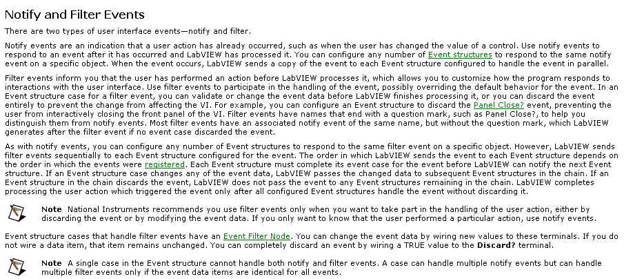 1. Verstehe ich richtig, du hast innerhalb eines VIs (am besten noch innerhalb einer While-Schleife) mehrere Event-Strukturen verwendet?? Das sollte man unbedingt vermeiden! Führt in der Regel (so wie bei dir) nur zu Ärger. Lies dir mal die Hinweise in der LV-Hilfe zur Verwendung der Event-Struktur durch!