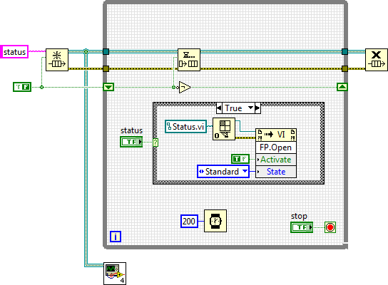 Erstens sehe ich keine For-Schleife in meinem Beispiel. Zweitens dieses Symbol (im Case) ist eine statische Referenz auf das Status.vi