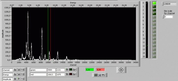 - Die verschiedenen Peaks dem jeweiligen X-Wert (=Kanal?) zuordnen?