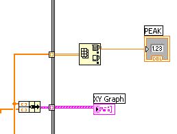 Innerhalb einer While-Schleife wird der XY-Graph erstellt. Ich möchte den Maximalwert der gezeichneten Kurve, den Peak, ermittlen, Y in abh. von X.
