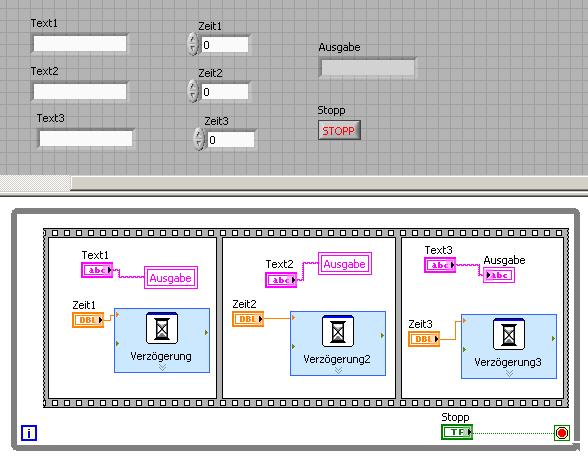 Hab mir auch schon überlegt, die Abfragen als Sub VI zu programmieren, aber dann kommen die Abfragen erst beim drücken eines Buttons und es entsteht eine Zeitverzögerung... Richtig?
