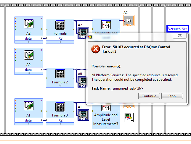 Er sagt normalerweise aus, dass du gleichzeitig auf die gleiche Messkarte bzw. den gleichen Eingang/Ausgang o.ä. zugreifst, was nicht funktioniert.