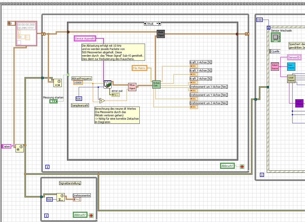 Die obere linke schleife ist für die datenerfassung zuständig, in ihr befindet sich das DAQmx Read VI. Diese stoppt doch die schleife solange bis die messwerte vorliegen, oder? Ich hab hier irgendwo im forum gelesen, dass man DAQmx Read und eine verzögerung in einer while schleife nicht kombinieren sollte! Weil es erstens sinnlos ist da read eh wartet und ausserdem kann dies irgendwie zu problemem führen.. bin ich da falsch informiert?