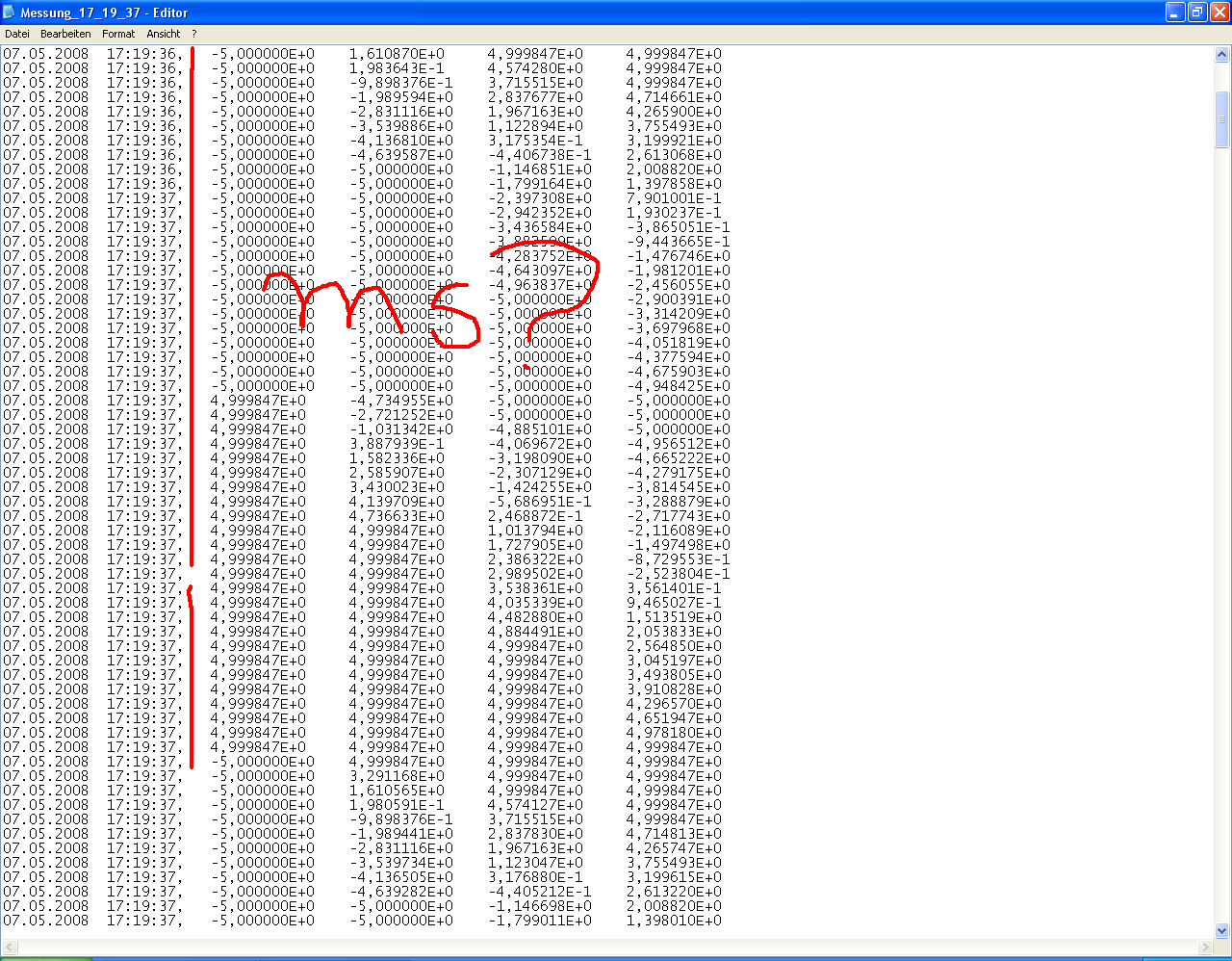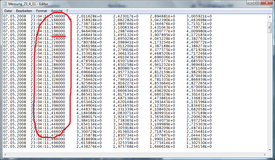 die Messsignale gespeichert.Mein Zeitstempel wird hier im diesem Format h:mConfused:ms angezeigt.